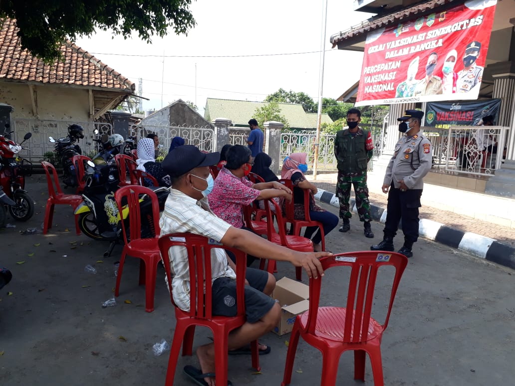 Kapolsek Leuwimunding Polres Majalengka Polda Jabar, IPTU Edi Purwanto bersama Anggota Koramil, memantau langsung giat vaksinasi yang dilakukan oleh Petugas Medis kepada masyarakat yang belum vaksin.