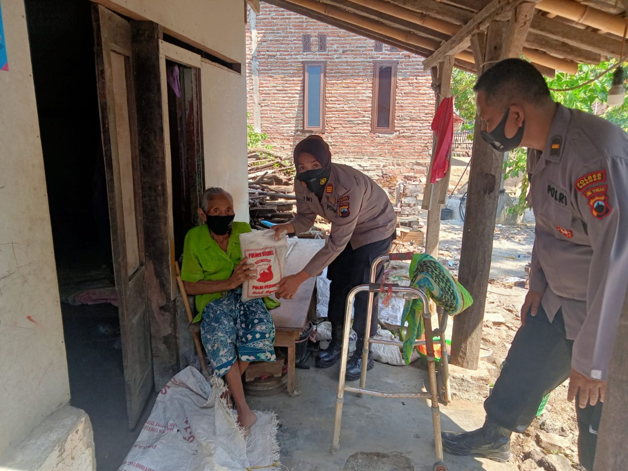 SIBERONE.COM – Polsek Losari Polres Brebes salurkan 20 paket sembako bantuan kepada warga kurang mampu dan lansia yang terkena dampak pandemi Covid-19, Kamis (29/7).