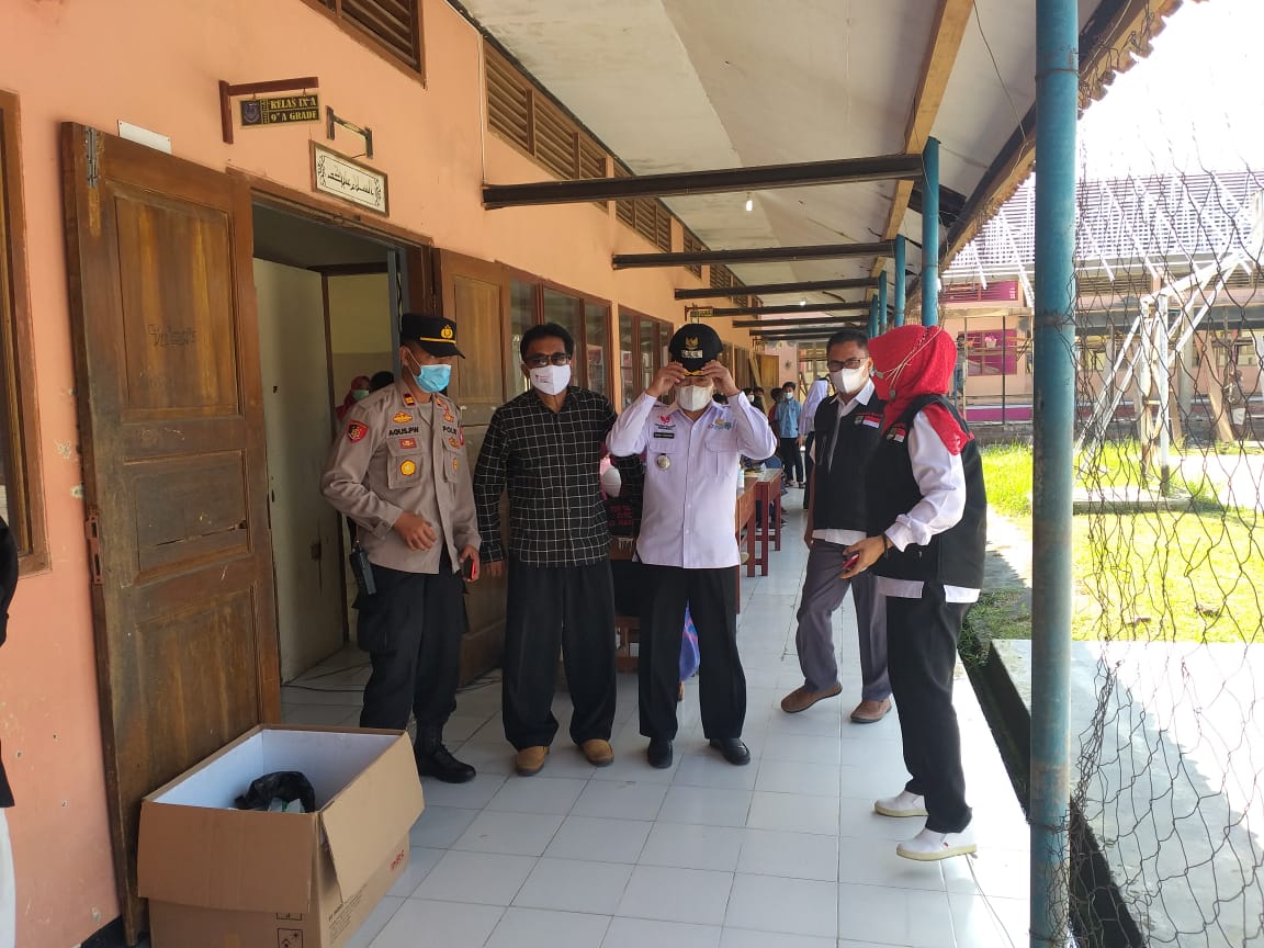 Kapolsek Argapura Polres Majalengka Polda Jabar, IPTU Agus Purwanto bersama anggota Koramil, memantau langsung giat vaksinasi yang dilakukan oleh petugas medis kepada masyarakat khususnya bagi remaja yang belum vaksin.