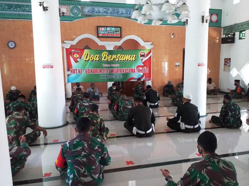 Disampaikan Pjs. Pasipers Kodim Brebes, Kapten Infanteri Tuteng Aryolona, selain memperingati HUT Korem, doa bersama juga ditujukan untuk keutuhan NKRI serta agar dunia dan bangsa Indonesia segera terbebas dari pandemi covid-19.