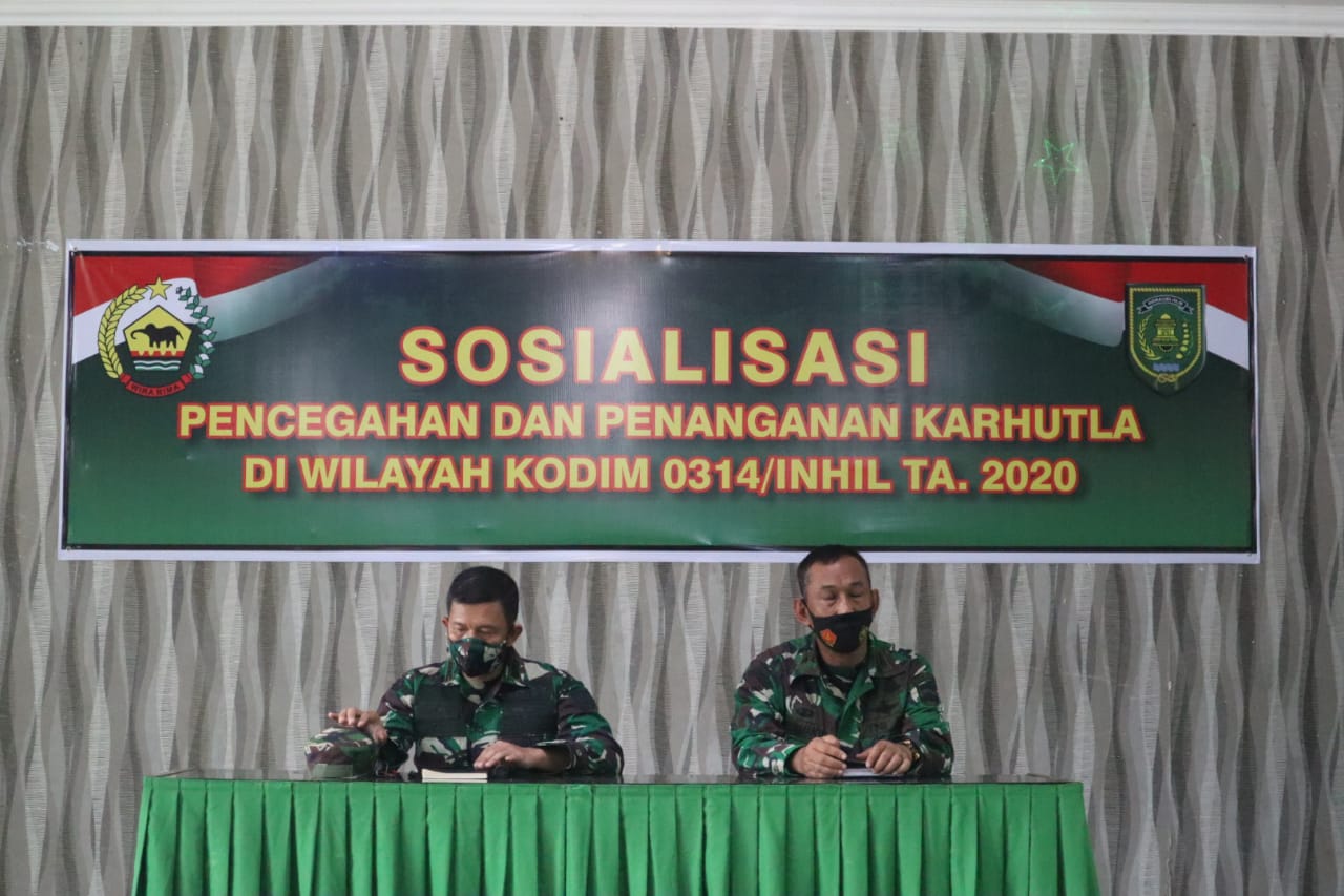 SIBERONE.COM - Dalam rangka mencegah dan antisipasi dini serta percepatan penanganan Kebakaran Hutan dan Lahan (Karhutla), Kodim 0314/Inhil melaksanakan Sosialisasi Pencegahan dan Penanganan Karhutla di wilayah Kodim 0314/Inhil TA 2020 bertempat di Aula Graha Bhakti Kamis (06/08/2020).