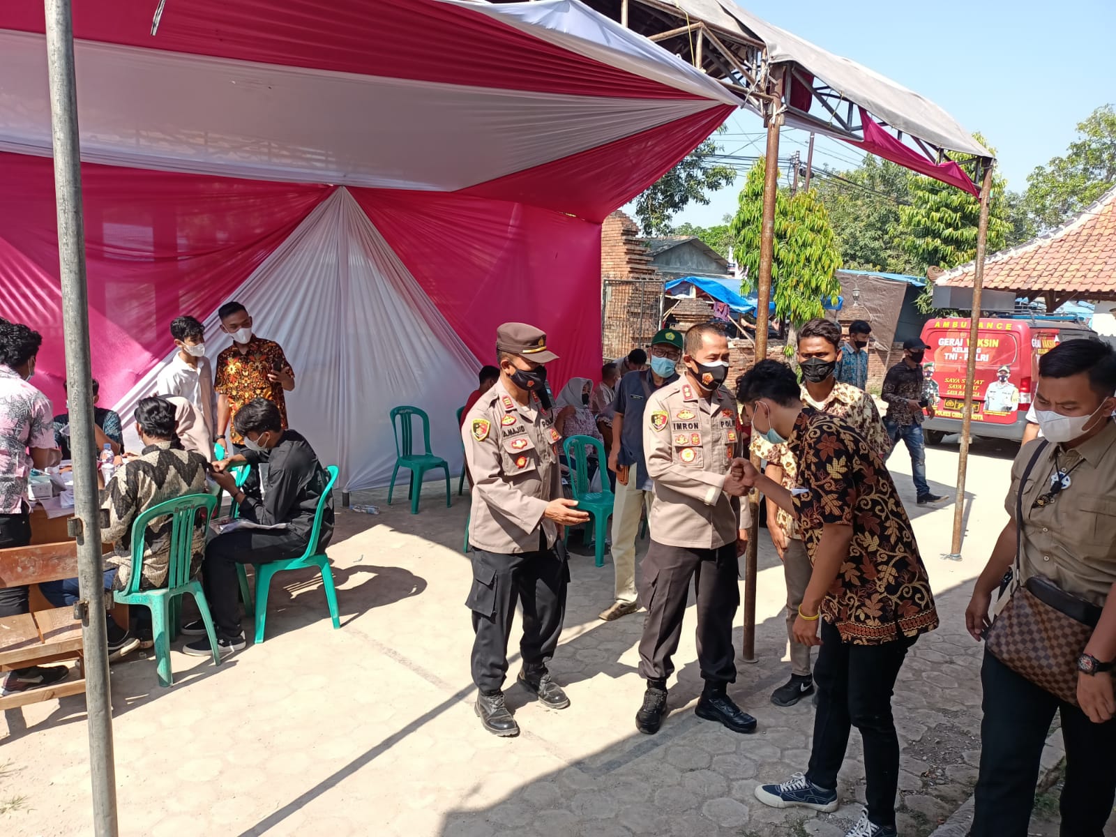 Kapolres Cirebon Kota Laksanakan Bansos dan Cek Vaksin Masal Masyarakat Kigede Mayung Desa Sirnabaya