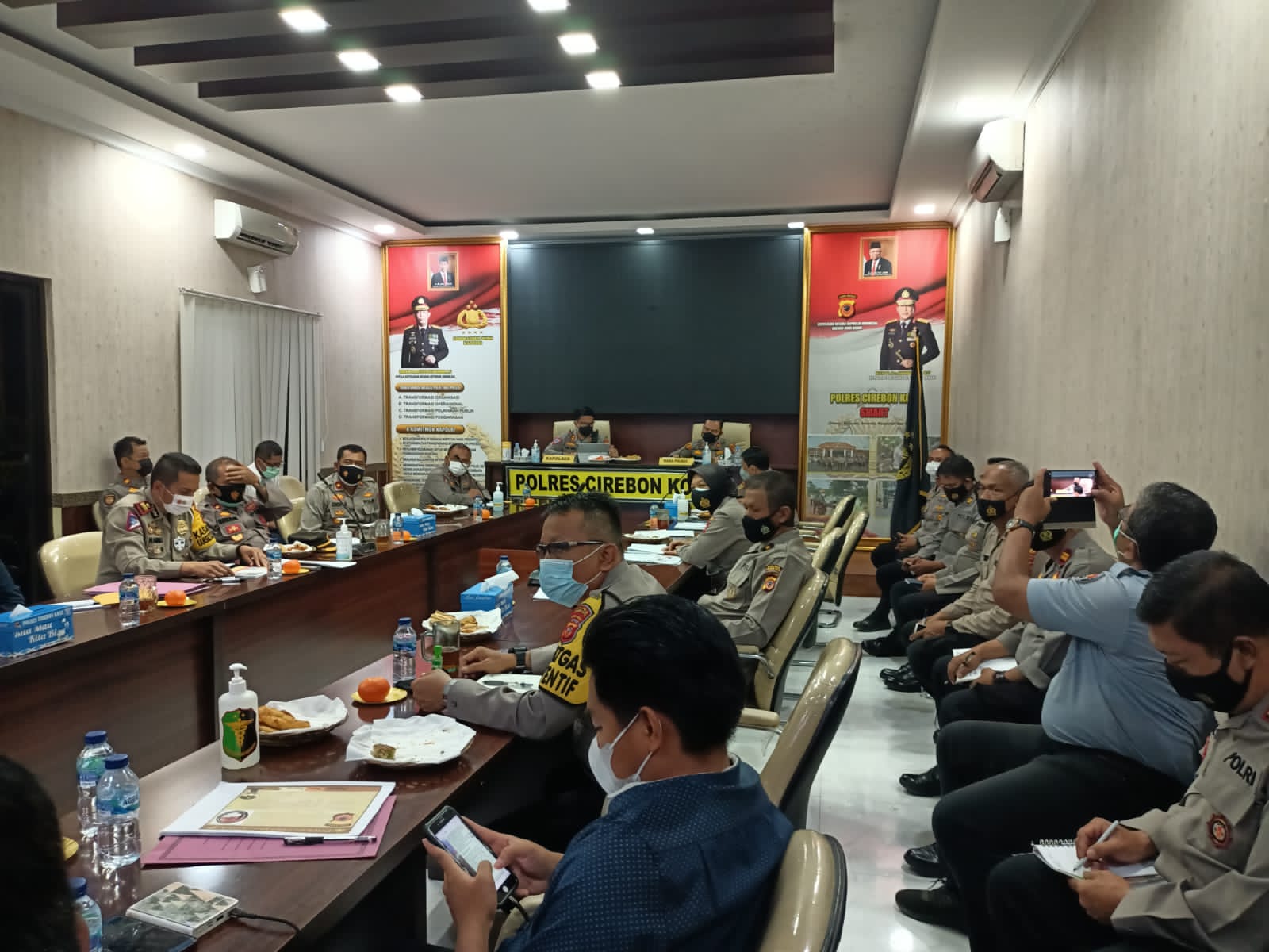 SIBERONE.COM - AKBP M. Fahri Siregar, SH. S.IK. MH. setelah resmi dilantik menjadi Kapolres Cirebon kota, segera melaksanakan rapat terbatas guna menyampaikan kebijakan serta visi dan misi yang akan dilaksanakan. Rapat berlangsung di ruang Aula Catur Prasetya Polres Cirebon Kota. Sabtu (11/9/2021) Jam 18.30 WIB.