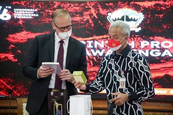 Gubernur Ganjar Pranowo pun memperkenalkan Jogo Tonggo kepada Duta Besar Denmark untuk Indonesia, di ruang rapat kantornya.