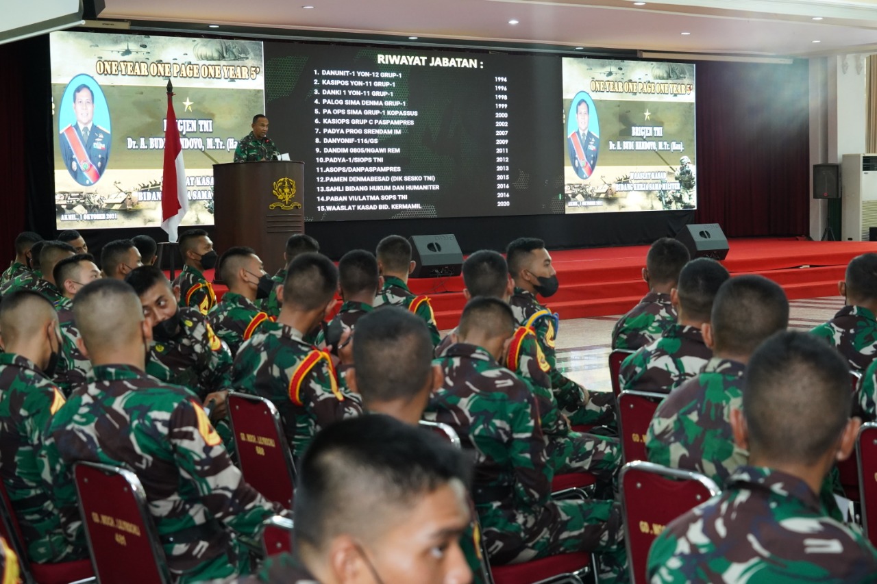 SIBERONE.COM - Taruna Akademi Militer (Akmil) Tingkat II sejumlah 424 Taruna, dan Taruna Tingkat III sejumlah 365 Taruna menerima pembekalan Waaspers Kasad Bid. Binpers, Brigjen TNI Hadi Basuki, S.Sos., M.M., M. Tr (Han) dan Waaslat Kasad Bid. Kermamil, Brigjen TNI Achmad Budi Handoyo bertempat di Gedung Moch. Lily Rochli Akademi Militer, Jum’at (1/10/2021).