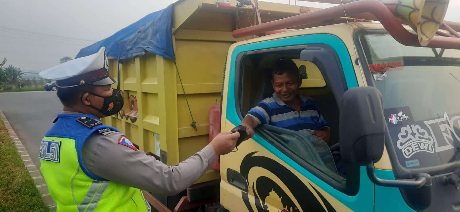 Dalam kegiatan tersebut petugas Kepolisian menyampaikan imbauan tertib berlalu lintas serta imbauan disiplin protokol kesehatan dalam rangka antisipasi penyebaran virus corona.