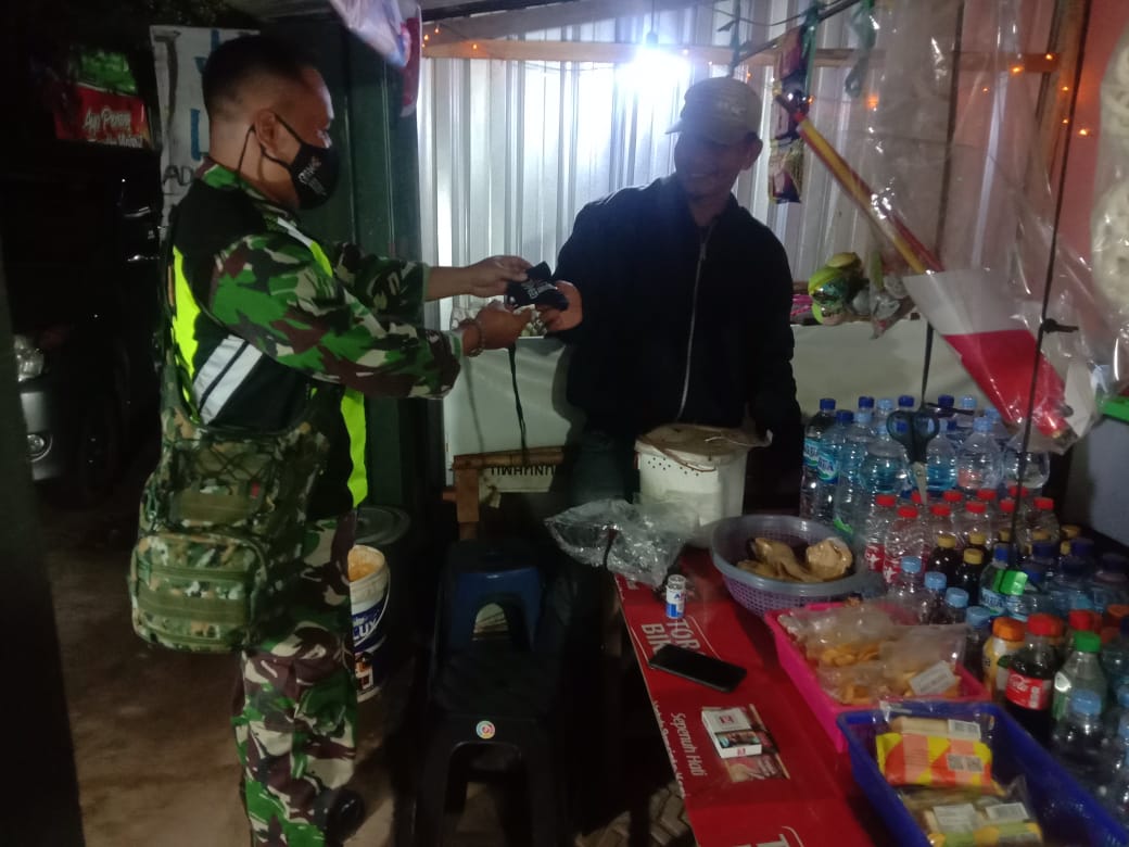 Seperti yang dilakukan Sertu Kukuh dan Serda Mujiyanto Babinsa Koramil 12/Tulis, Selasa malam ( 5/10/2021 ). Yang mana saat ini Kabupaten Batang berada di level 3, naik satu tingkat dari yang semula level 2.