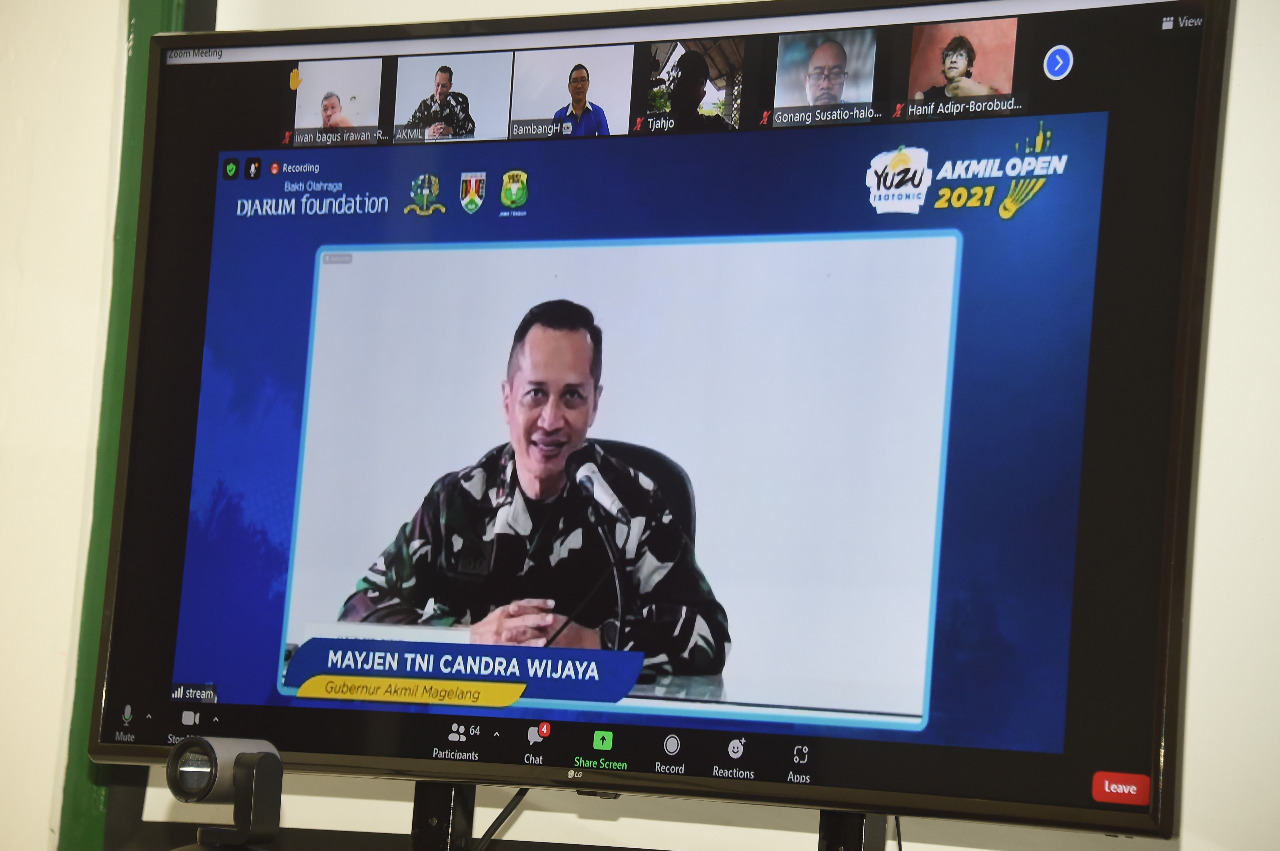 SIBERONE.COM - Gubernur Akademi Militer Mayjen TNI Candra Wijaya didampingi Dandenma Akmil Kolonel Inf Dodiet Lumwartono, S.Pd., Kapenhumas Akmil Letkol Arm Kukuh Dwi Antono, S.I.P. dan Kabagter Sdirum Akmil Letkol Inf Dedi Kurniadi melaksanakan vicon bertempat di ruang Oerip Soemohardjo bersama YUZU Isotonic Djarum Magelang dalam rangka kejuaraan bertajuk YUZU Isotonic Akmil Open 2021 Turnamen Bulutangkis berskala nasional yang akan diselenggarakan di dua arena, yakni GOR Djarum Magelang dan GOR Soeroto Akademi Militer mulai Kamis, 28 Oktober sampai Minggu, 7 November 2021, Rabu (27/10/2021).