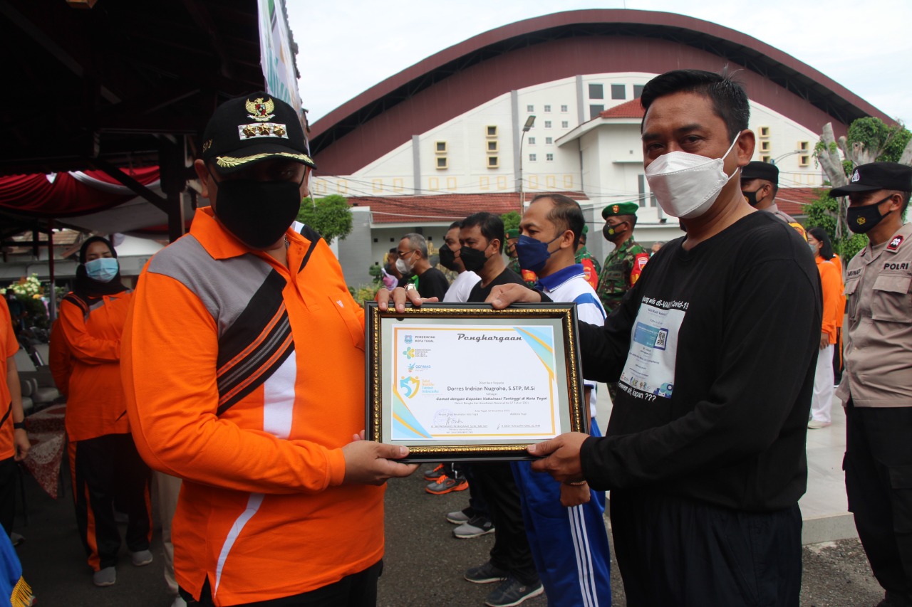 Penghargaan disampaikan Sekertaris Daerah Kota Tegal. Dr. Drs. Johardi, M.M., usai Wali Kota bertindak sebagai Pembina Apel Peringatan Hari Kesehatan Nasional (HKN) ke-57 Tahun 2021 di Kota Tegal yang berlangsung di Halaman Pendopo Ki Gede Sebayu Kota Tegal, Kompleks Balai Kota Tegal, Jumat (12/11/2021) pagi.