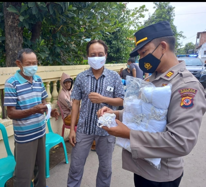 Amazing Kasat Binmas Polres Cirebon Kota, Tebarkan Ribuan Masker dalam Pilwu Serentak 2021