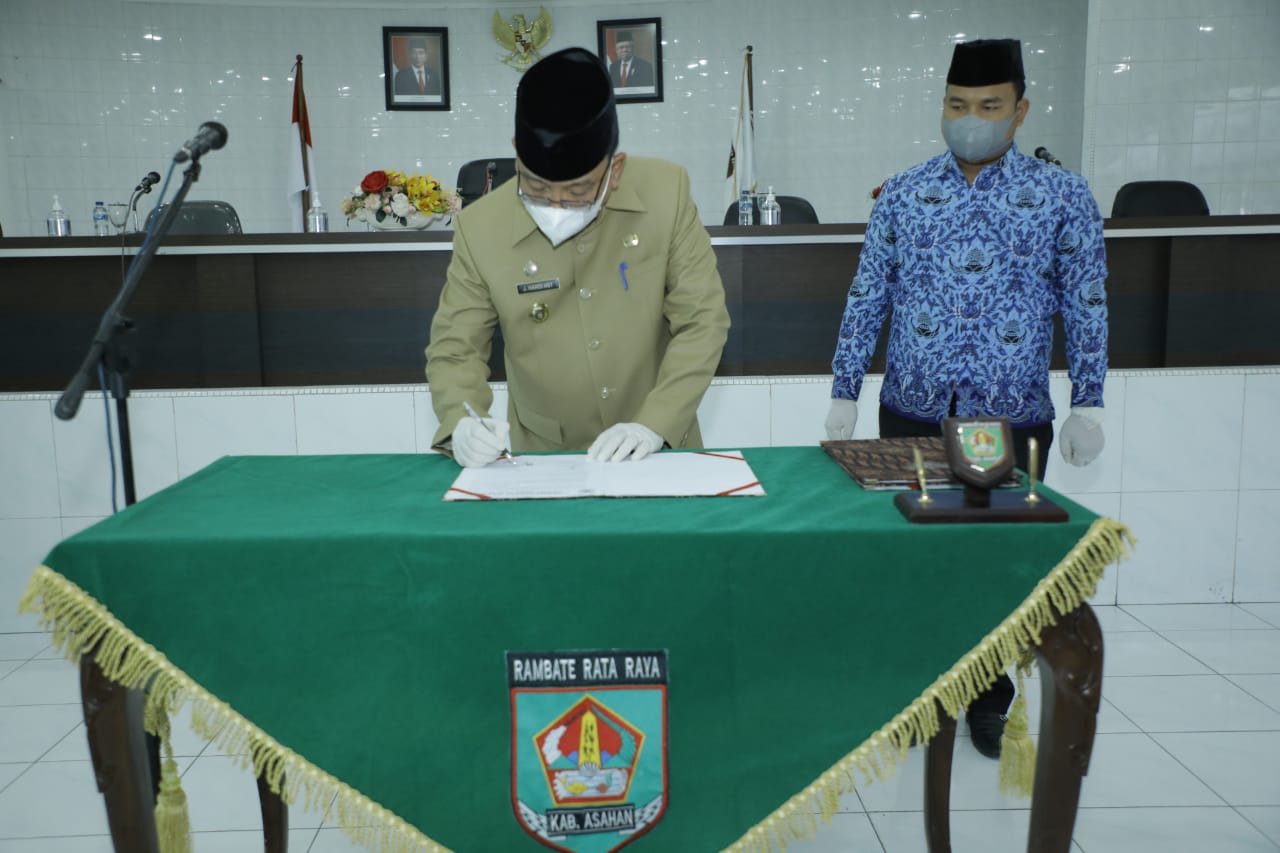 Siberone.com - Sesuai dengan Surat Keputusan Bupati Asahan Nomor 140-BKD-Tahun 2021 tentang Pengukuhan Pegawai Negeri Sipil Dalam Jabatan Pimpinan Tinggi Pratama Inspektur Daerah Kabupaten Asahan, Bupati Asahan melalui Sekretaris Daerah (Sekda) Kabupaten Asahan Drs. John Hardi Nasution, M. Si mengkukuhkan Zulkarnain Nasution, SH sebagai Pejabat Pimpinan Tinggi Pratama Inspektur Daerah Kabupaten Asahan, Senin (29/11/2021).