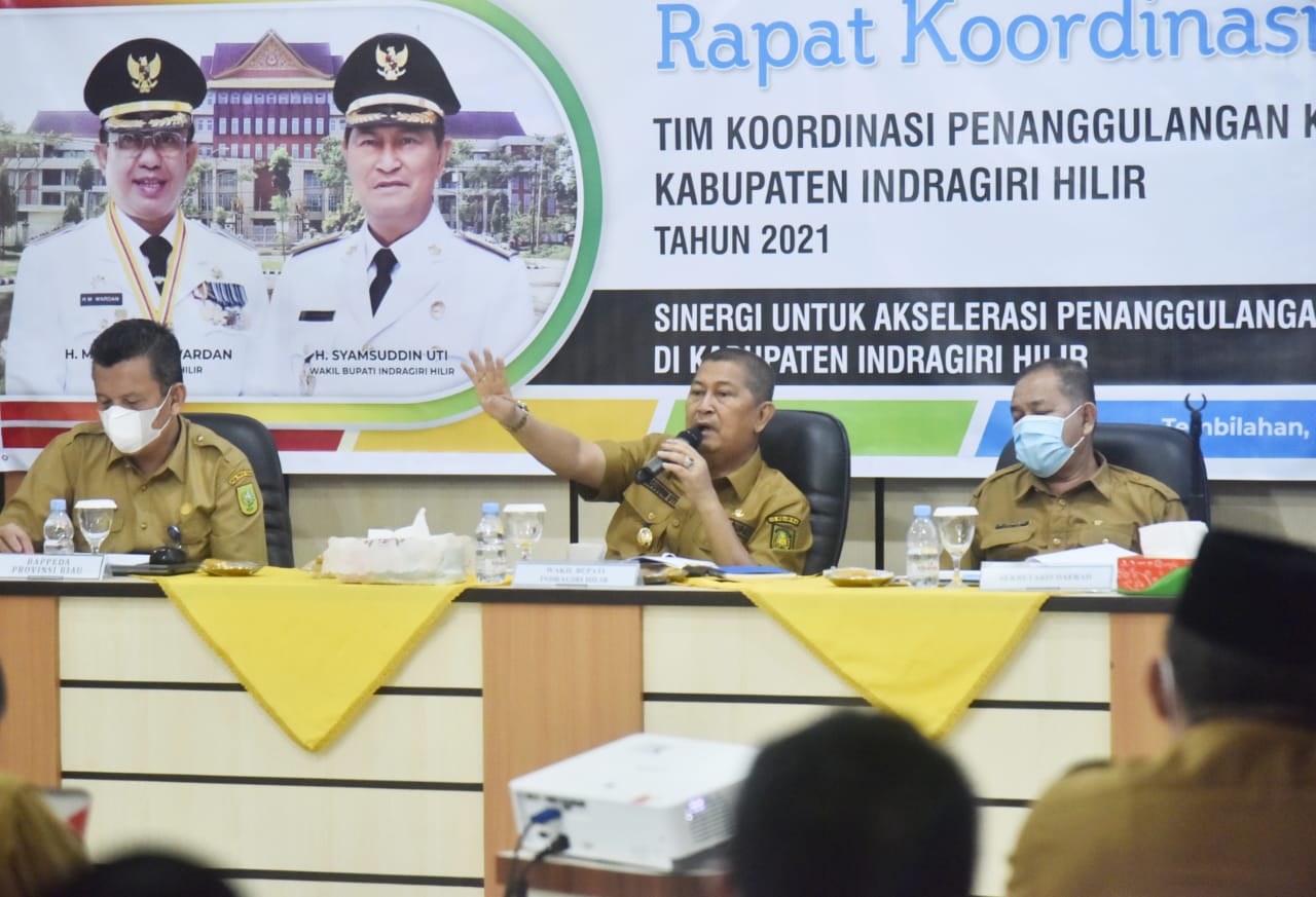 Dalam sambutannya Wakil Bupati Inhil H Syamsuddin Uti mengatakan. Adapun maksud dan tujuan dilaksanakannya rapat koordinasi ini adalah untuk memperoleh kesamaan persepsi akan kondisi kemiskinan di tingkat Kabupaten Indragiri Hilir.
