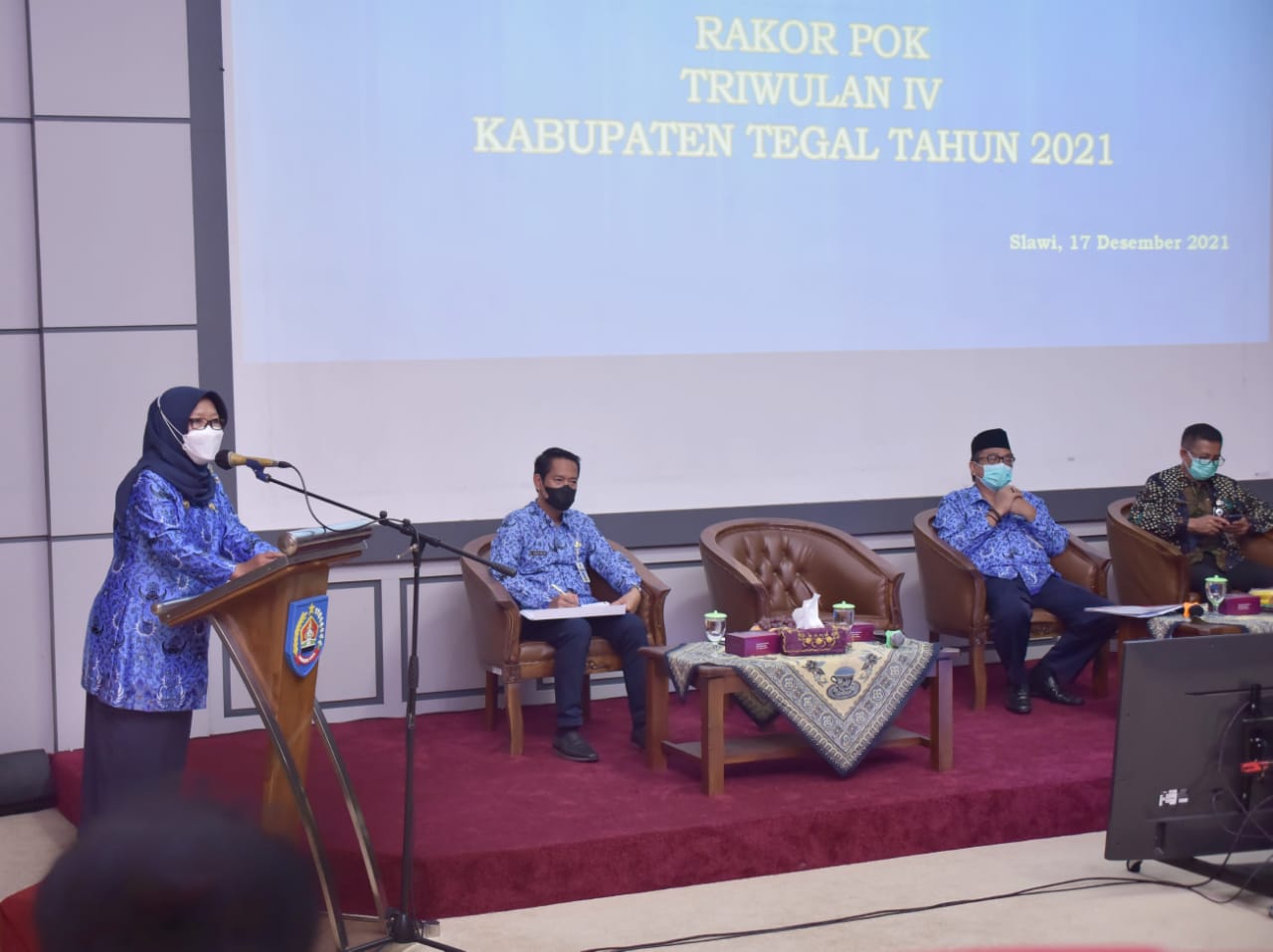 Sementara itu, Bupati Tegal Umi Azizah menyampaikan apresiasinya kepada seluruh perangkat daerah yang sudah berusaha maksimal memberikan yang terbaik untuk masyarakatnya melalui penyediaan layanan yang inovatif dan bermutu. Menurut Umi, meskipun banyak tantangan yang dihadapi di tahun 2021 ini tidak ringan, namun Pemerintah Kabupaten Tegal selalu mengupayakan yang terbaik.