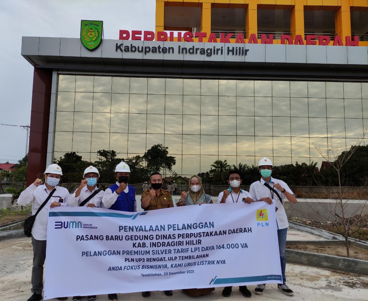 SIBERONE.COM - PT PLN (Persero) Up3 Rengat, unit layanan pelanggan (ULP) Tembilahan, penyalaan pelanggan pasang baru gedung Perpustakaan Daerah Kabupaten Indragiri Hilir (Inhil) pelanggan premium silver tarif LP1 Daya 164.000 VA. bertempat di jalan Pendidikan Gedung Perpustakaan Daerah, kecamatan Tembilahan.