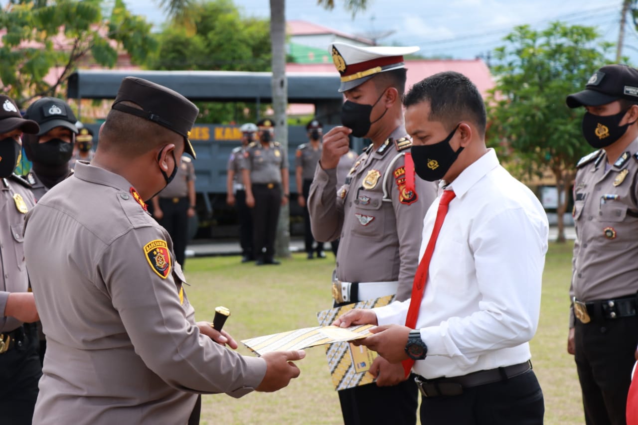 Bersamaan dengan itu, Kapolres Kampar AKBP. Rido Purba S.IK MH juga memberikan penghargaan kepada 11 orang personel karena berprestasi dan berdedikasi tinggi dalam melaksanakan tugasnya.