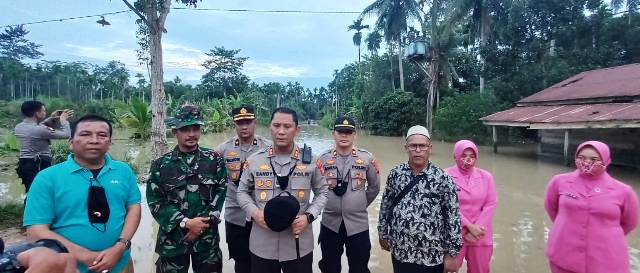 Tinjau Lokasi Banjir di Pantee Bidari, Kapolres Aceh Timur Serahkan Bantuan kepada Warga