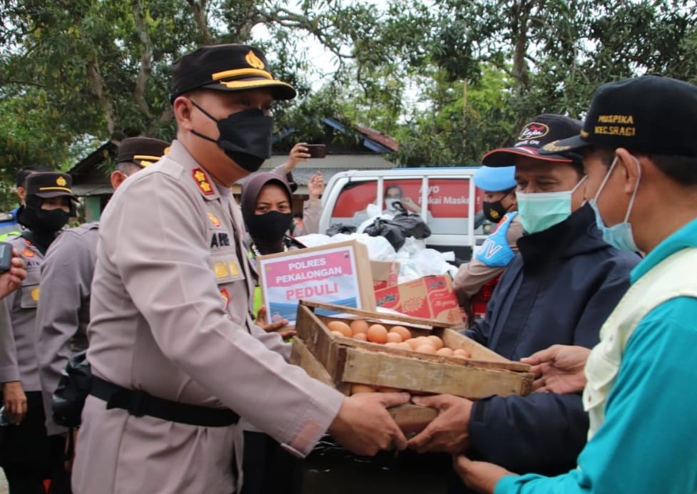 Dalam kunjungan itu, Kapolres Pekalongan memberikan bantuan sosial berupa sembako dan lain sebagainya untuk dibagikan kepada 644 warga yang terkena bencana banjir.