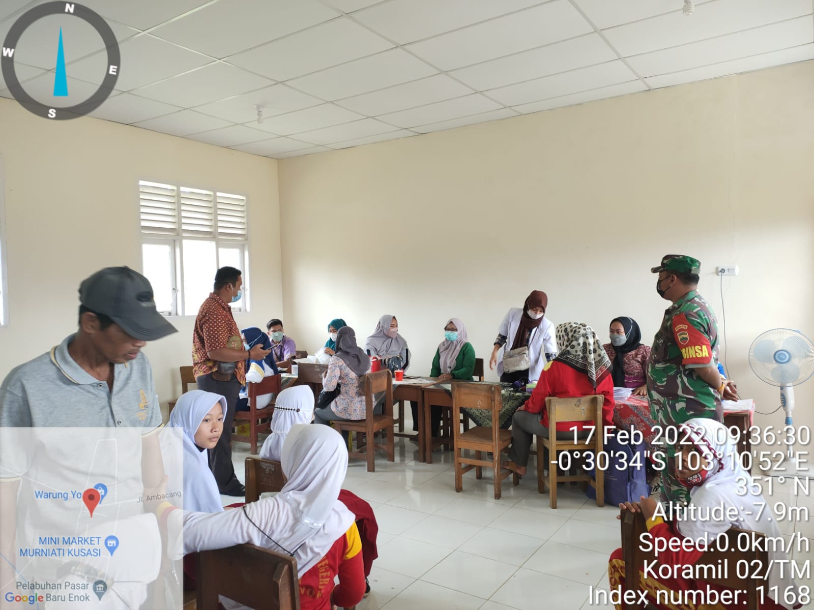 SIBERONE.COM Bintara Pembina Desa (Babinsa) Komando Rayon Militer (Koramil) 02/Tanah Merah Serma Boy R Sitompul melaksanakan pendampingan dan monitoring pelaksanaan vaksinasi Dosis ke II untuk siswa-siswi usia 6 sampai 11 tahun, di SD Negeri 001 Kelurahan Enok kecamatan Enok kabupaten Indragiri Hilir. Pada Kamis (17/2/2022) pagi.