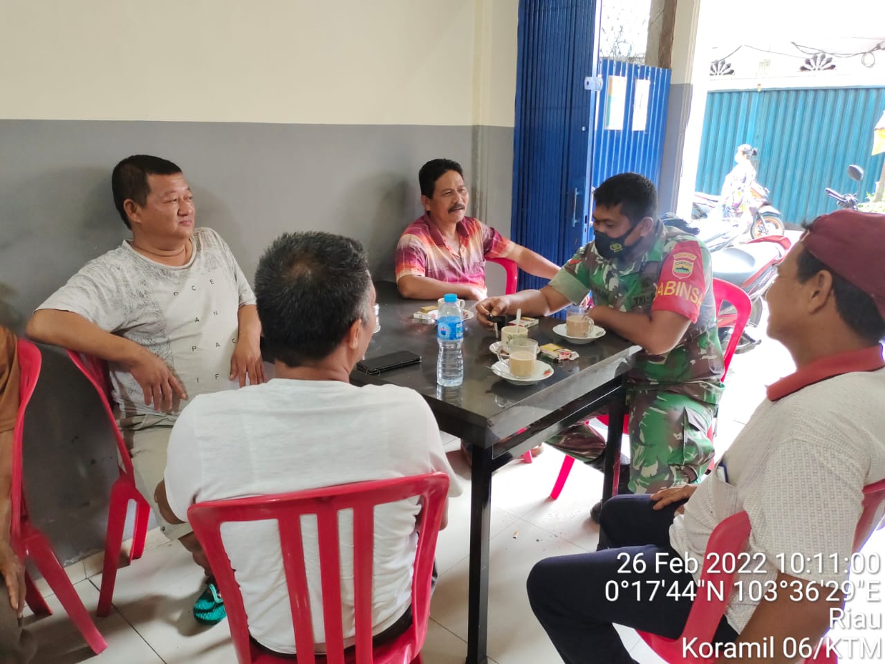 Ciptakan kedekatan warga binaan, Babinsa Koramil 06/Kateman kodim 0314/Inhil Kopda Al Alim, melaksanakan Komsos dengan warga sekaligus mengimbau agar warga selalu patuhi Protkes di masa pandemi COVID-19. Bertempat di Sungai Guntung, kecamatan Kateman kabupaten Indragiri Hilir, pada Sabtu (26/2/2022)