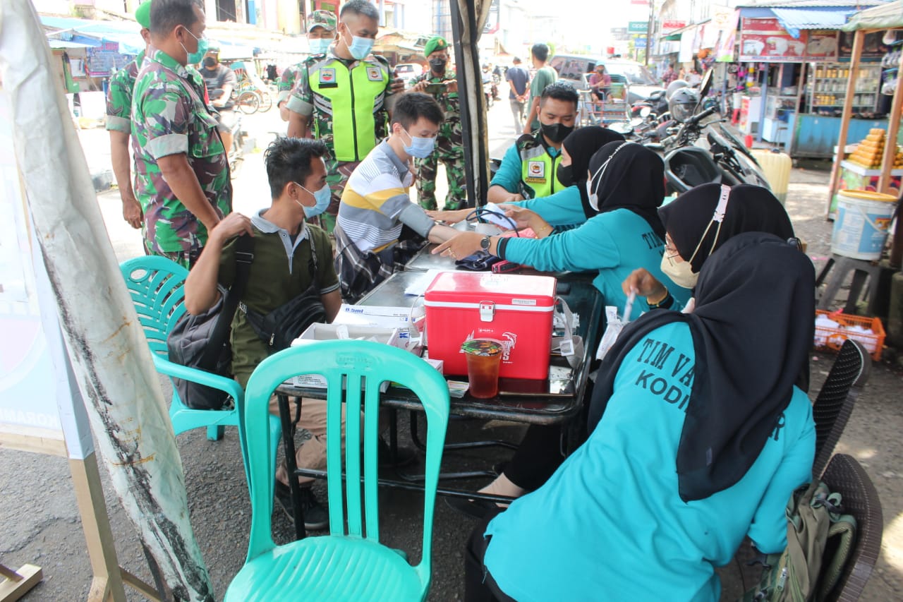 Polkes Kodim 0314/Inhil dan Anggota Koramil 01/Tembilahan Gelar Vaksin di Pasar Air Mancur