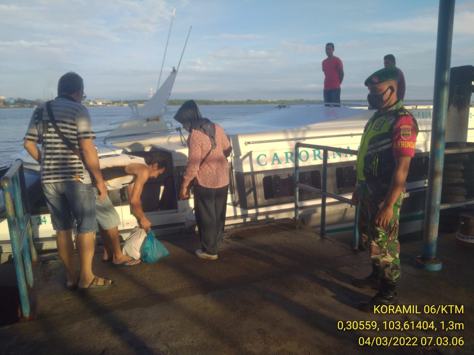 Lebih lanjut dikatakan Babinsa Koramil 06/Kateman Serda Mulyadi Pada Pukul 07:25 WIB pengecekan terhadap penumpang kapal carolina dari Guntung, Pulau Burung Tanjung Batu tujuan Batam pengecekan kelengkapan surat dari dinas kesehatan terkait.