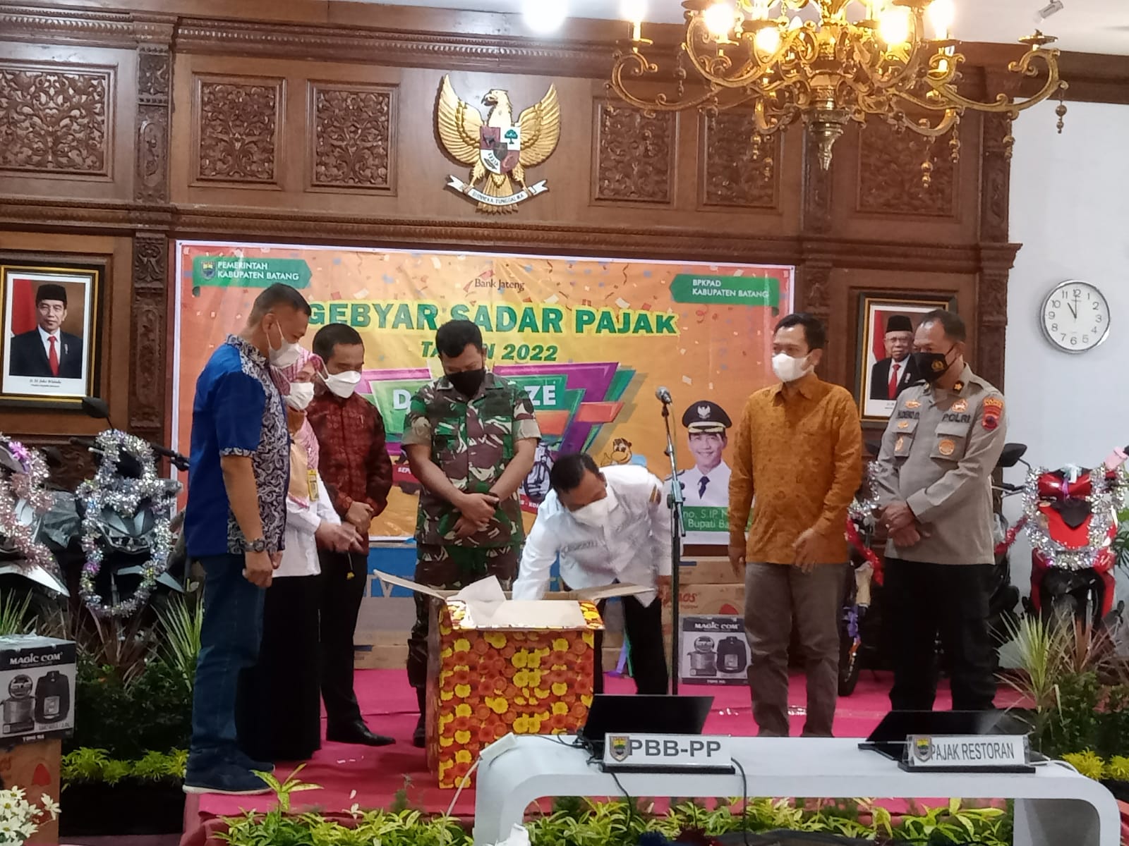 Pelaksanaan undian gebyar sadar pajak dihadiri Komandan Kodim 0736/Batang Letkol Arh Yan Eka Putra bersama Forkopimda dan Camat se Kabupaten Batang.