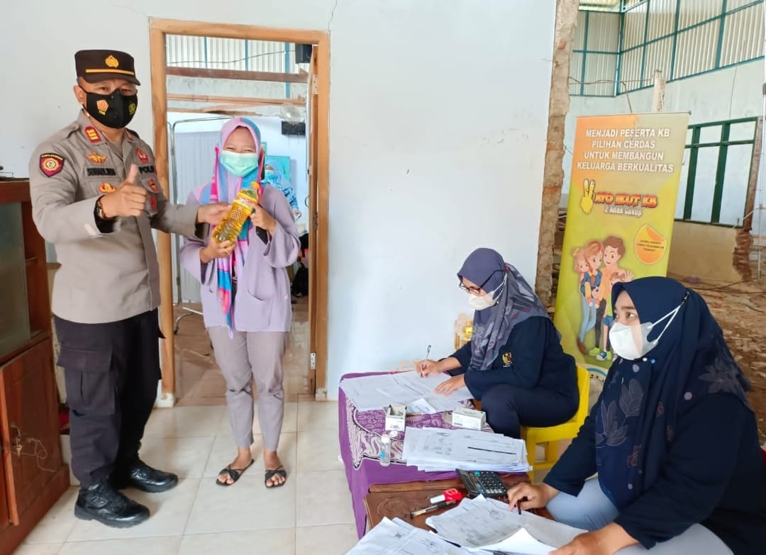 Pembagian minyak goreng gratis kepada peserta vaksinasi ini sengaja dilakukan Pemerintah Desa setempat bersama Polsek Bojong untuk menarik minat warga agar mau divaksin.
