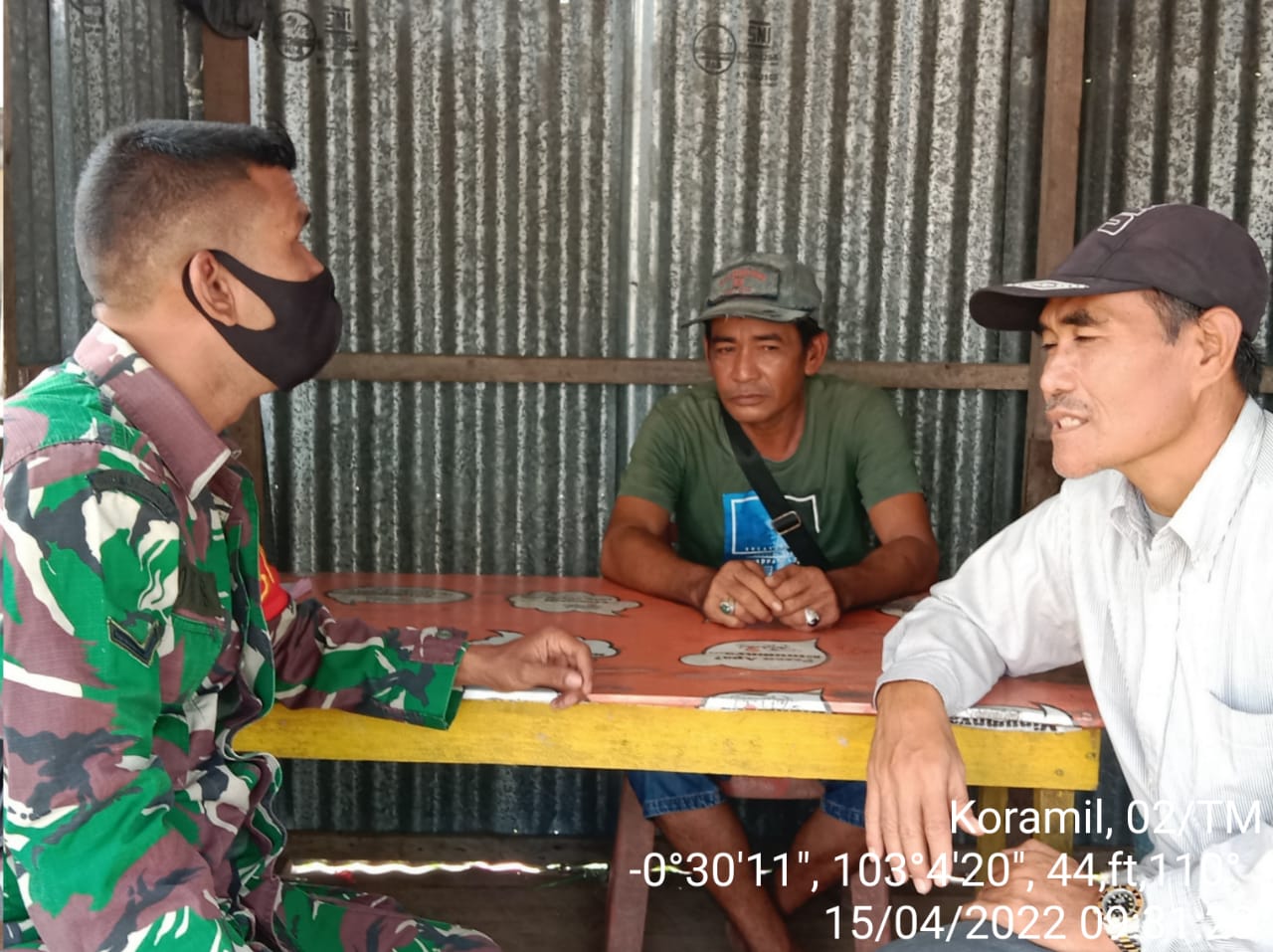 Ciptakan kedekatan warga binaan, Babinsa Koramil 02/Tanah Merah melaksanakan Komsos dengan warga sekaligus mengimbau agar warga selalu patuhi prokes di masa pandemi COVID-19. Bertempat di desa Sungai Rukam kecamatan Enok, Kabupaten Indragiri Hilir, Jum'at (15/4/2022).