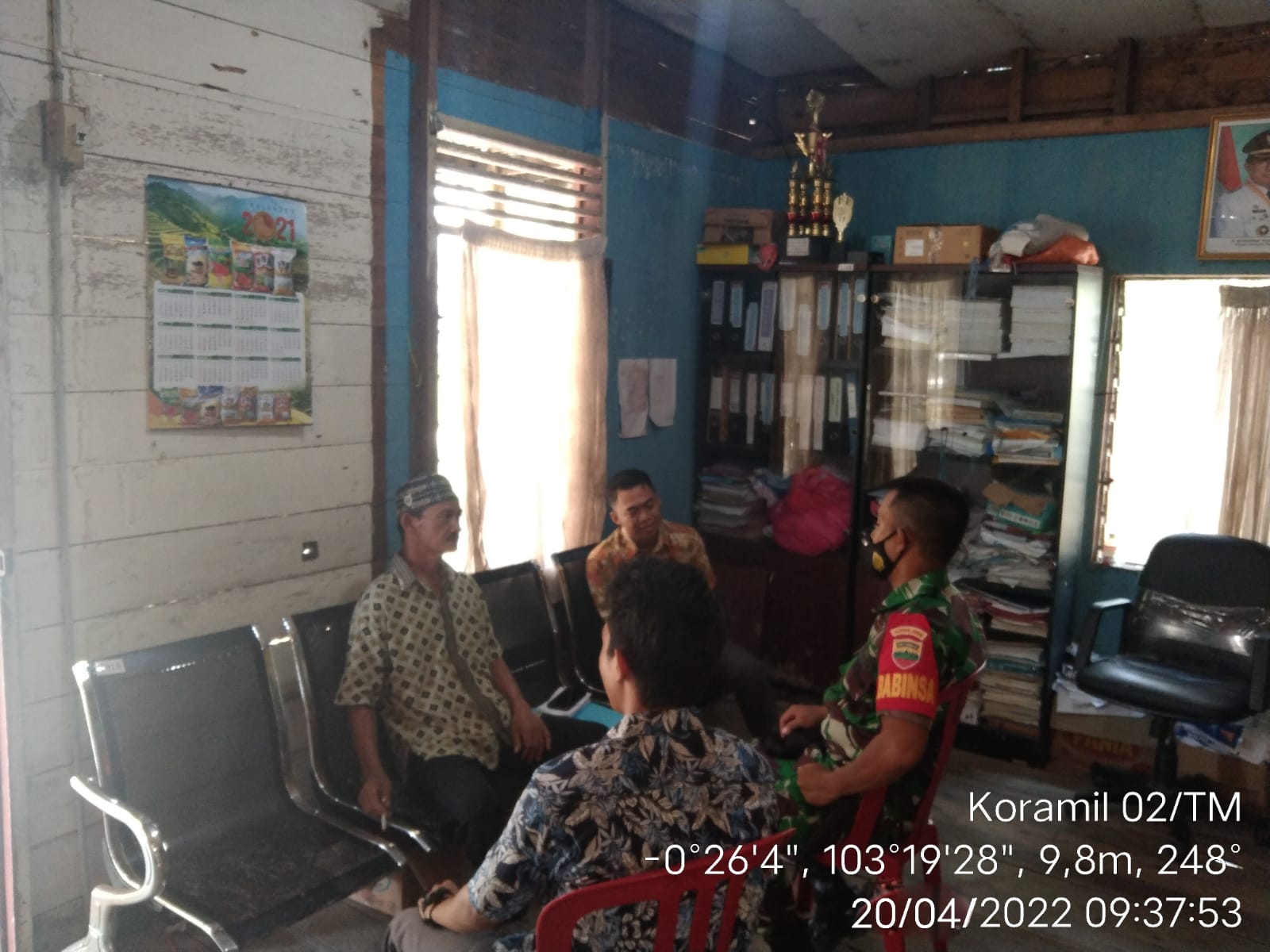 Dikatakan Serda Agusmi Harianto Babinsa Koramil 02/Tanah Merah. Tujuan Komsos dengan perangkat desa secara langsung hasilnya akan lebih efektif, Rabu (20/4/2022) pagi.