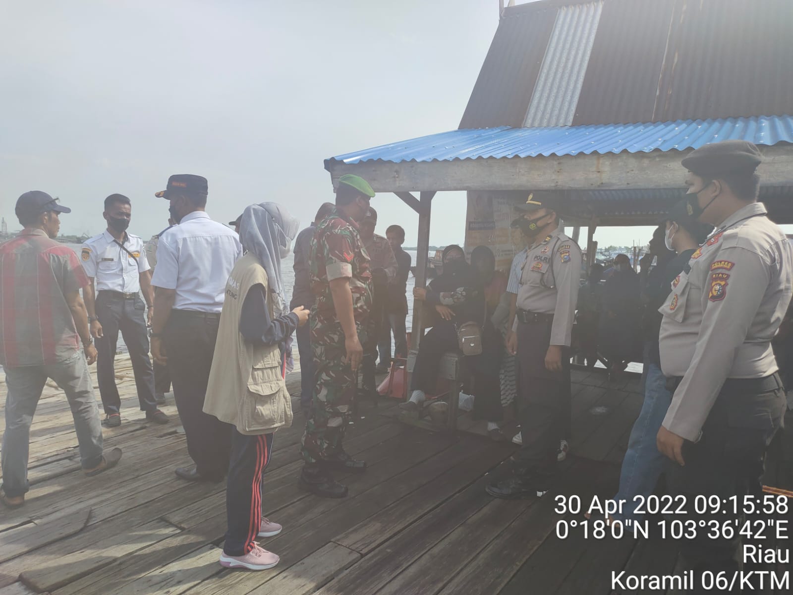 Siaga bersama dalam Pam Arus Mudik Baru 2022. Bertempat di pelabuhan Syahbandar HK Sungai Guntung, kelurahan Tagaraja, kecamatan Kateman, kabupaten Indragiri Hilir. Sabtu, (30/4/2022).