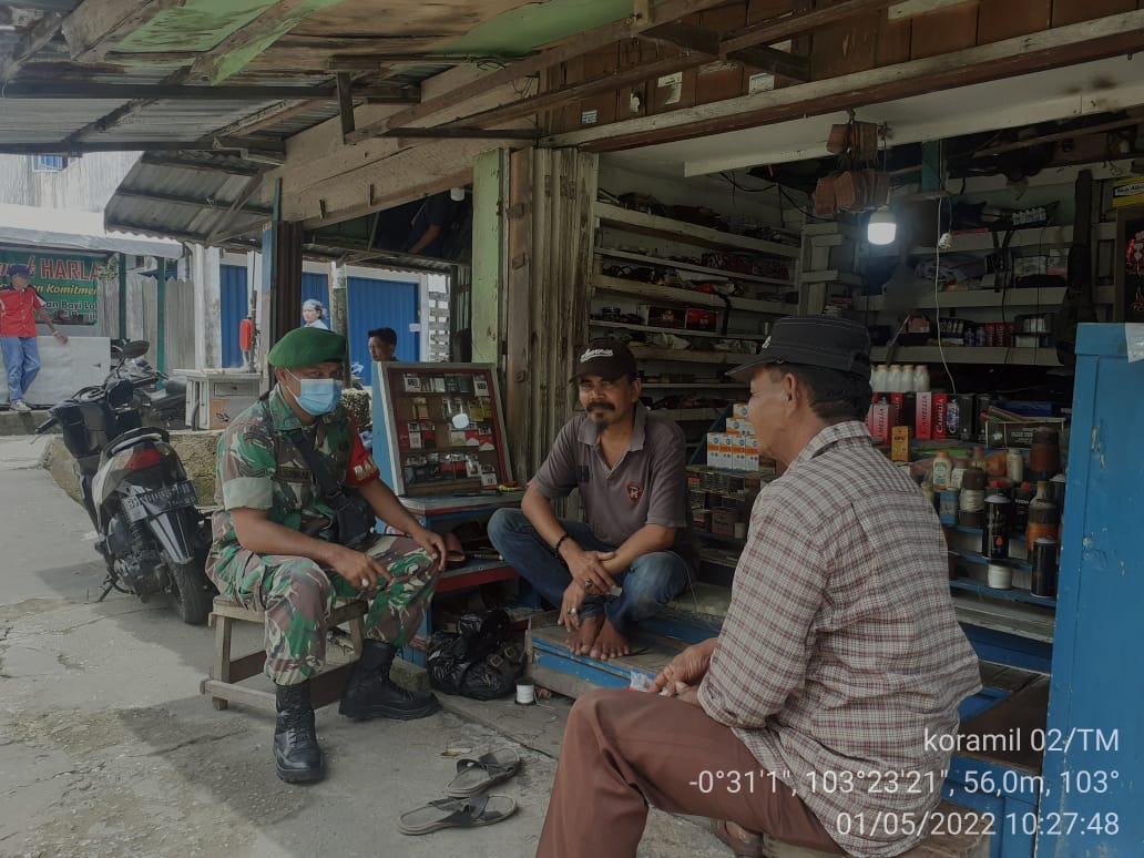 SIBERONE.COM - Untuk menjalin silaturahmi dengan warga Binaan, Personel Bintara Pembina Desa (Babinsa) Koramil 02/Tanah Merah jajaran Kodim 0314/Inhil Sertu P Siregar turun ke wilayah binaan untuk melaksanakan giat Komunikasi Sosial (Komsos) bersama warga binaan.