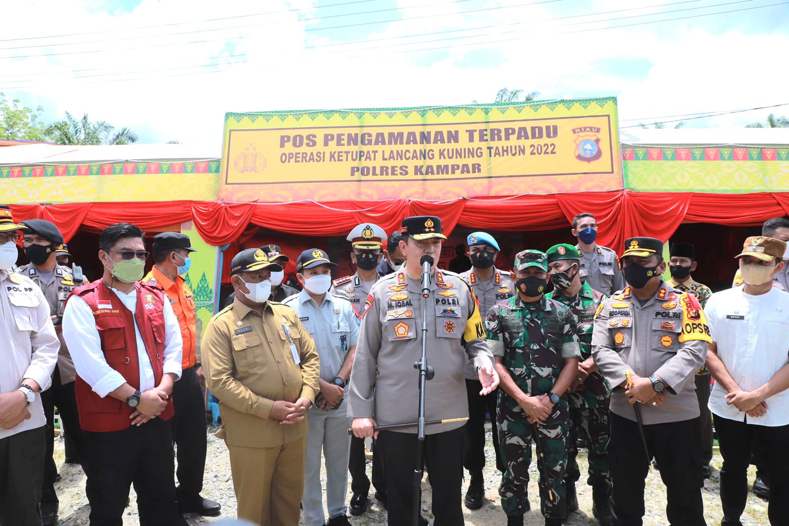 SIBERONE.COM - Pejabat Utama (PJU) Polda Riau bersama Kapolda Riau, Irjen Pol Mohammad Iqbal melaksanakan peninjauan Pos Terpadu Polres Kampar di XIII Koto Kampar, perbatasan Riau - Sumbar, Minggu (1/5/2022).