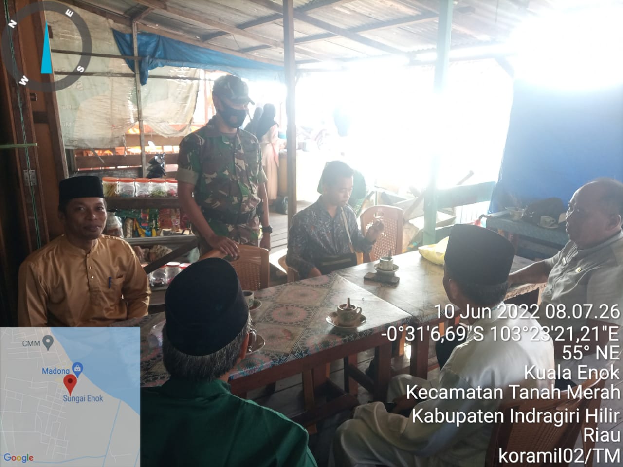 SIBERONE.COM - Penegakan disiplin terpadu Protokol kesehatan upaya mencegah terjadinya penyebaran COVID-19 terus dilakukan oleh personil Babinsa Koramil 02/Tanah Merah jajaran Kodim 0314/Inhil Serda M Ade Putrawan di kelurahan Kuala Enok, kecamatan Tanah Merah, kabupaten Indragiri Hilir (Inhil) Jum'at ( 10/6/2022) pagi.