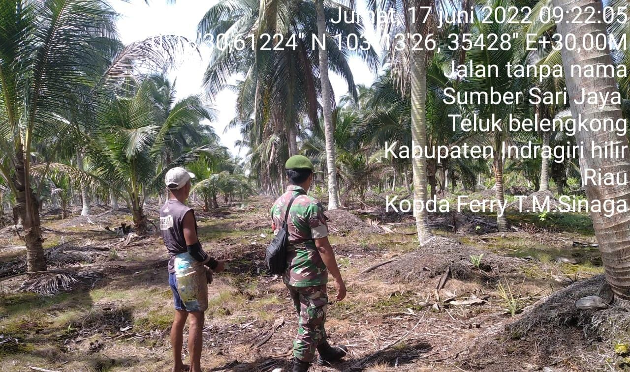 SIBERONE.COM – Memastikan wilayah binaan tidak ada kebakaran hutan dan lahan masyarakat. Babinsa Koramil 06/Kateman, jajaran Kodim 0314/Inhil Kopda Ferry Sinaga melaksanakan patroli dan sosialisasi bersama warga di desa Sumber Sari Jaya, Kecamatan Teluk Belengkong, kabupaten Indragiri Hilir (Inhil), pada Jum'at (17/6/2022) pukul 09:27 WIB.