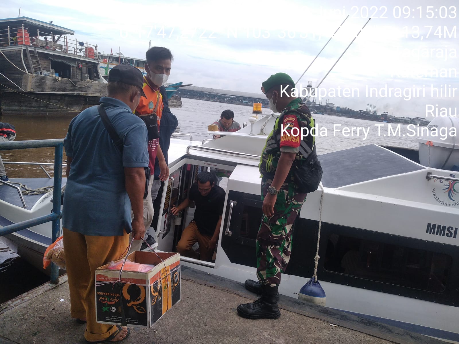 Terakhir dikatakan kopda Ferry Sinaga pada pukul 09:00 wib pengecekan terhadap penumpang kapal marina dari Guntung tujuan Batam dan pengecekan kelengkapan surat dari dinas kesehatan terkait. Pukul 09:15 wib pengecekan terhadap penumpang kapal tenggiri dari Guntung tujuan Batam.