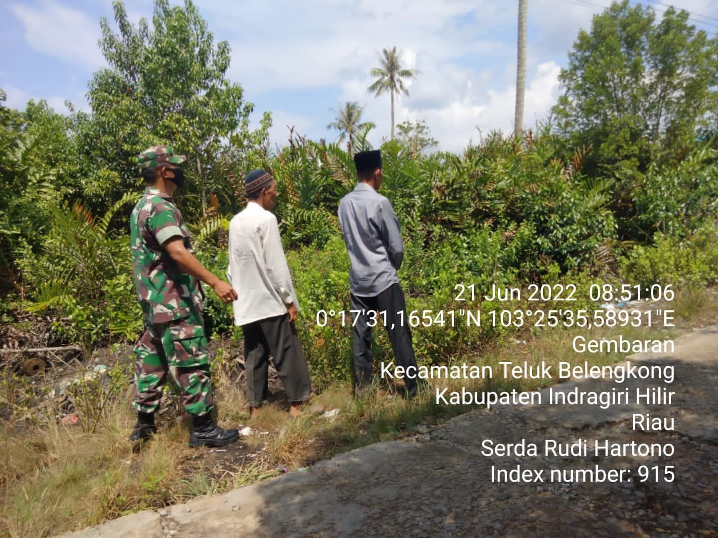 SIBERONE.COM - Babinsa Koramil 06/Kateman jajaran Kodim 0314/Inhil Serda Rudi Hartono bersama dua warga binaan melaksanakan patroli dan sosialisasi Karhutla dengan warga binaan di desa Gambaran, kecamatan Teluk Belengkong, kabupaten Indragiri Hilir (Inhil), pada Selasa (21/6/2022) pagi.