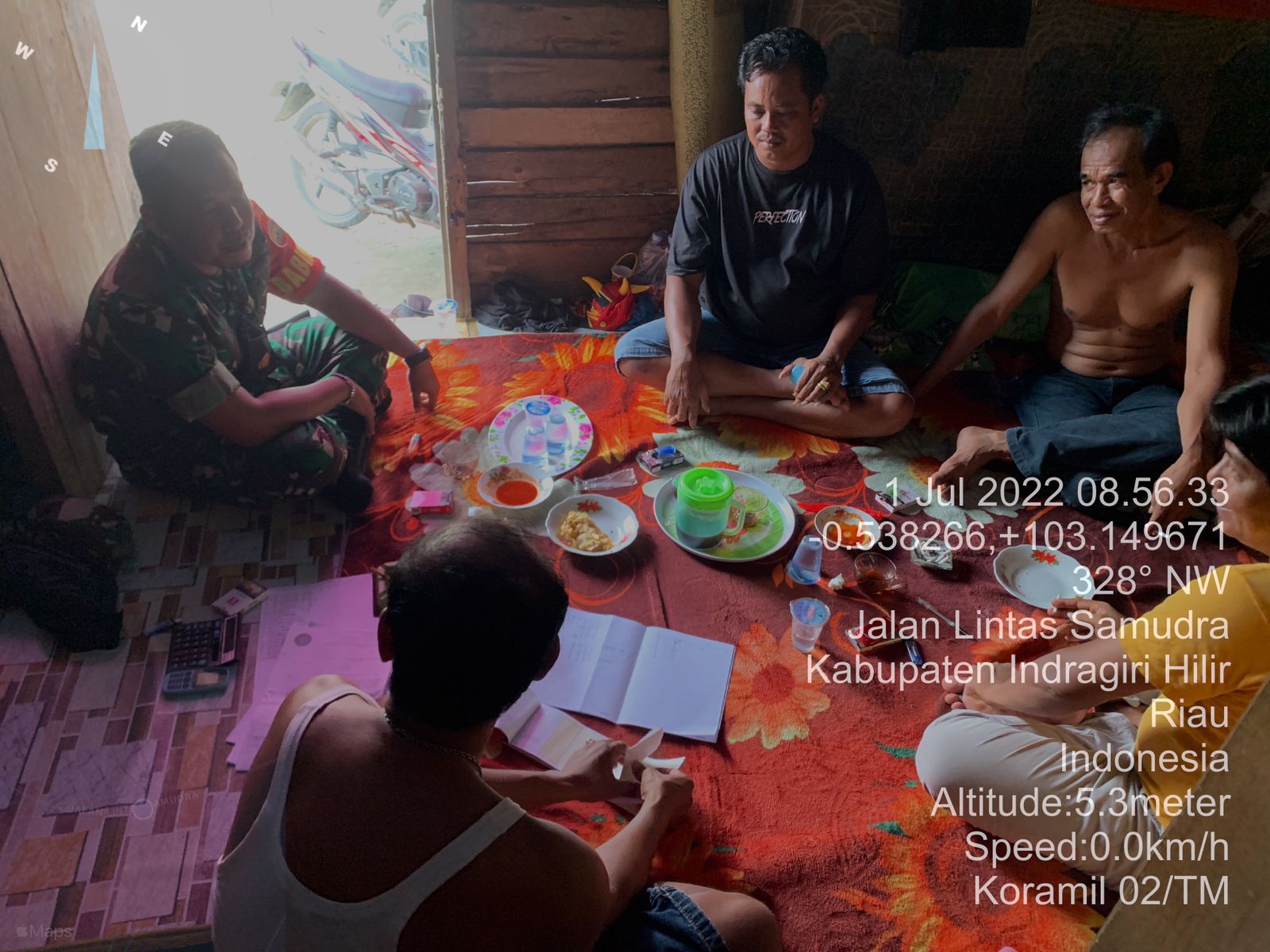 SIBERONE.COM - Babinsa Koramil 02/Tanah Merah jajaran Kodim 0314/Inhil Serda Marhalim Pasaribu melaksanakan silaturahmi ke salah satu rumah warga binaan, di kelurahan Pusaran, kecamatan Enok, kabupaten Indragiri Hilir (Inhil), Jum'at (1/7/2022) pagi.