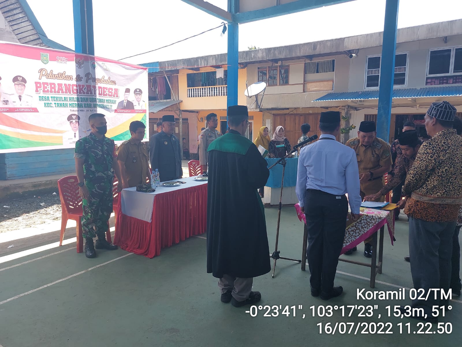 Kegiatan pelantikan dan pengambilan sumpah jabatan tersebut dilaksanakan di lapangan Badminton desa Tekulai Hilir, kecamatan Tanah Merah, kabupaten Indragiri Hilir (Inhil), Sabtu (16/7/2022) pagi.