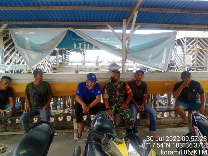SIBERONE.COM - Guna Memperkuat Sinergitas, Babinsa Koramil 06/Kateman, jajaran Kodim 0314/Inhil, Praka Piki Eka Putra Waldi melaksanakan kegiatan Komsos (Komsos) bertempat di pasar Sungai Guntung, kelurahan Tagaraja, kecamatan, kabupaten Indragiri Hilir, Sabtu (30/7/2022) pagi.