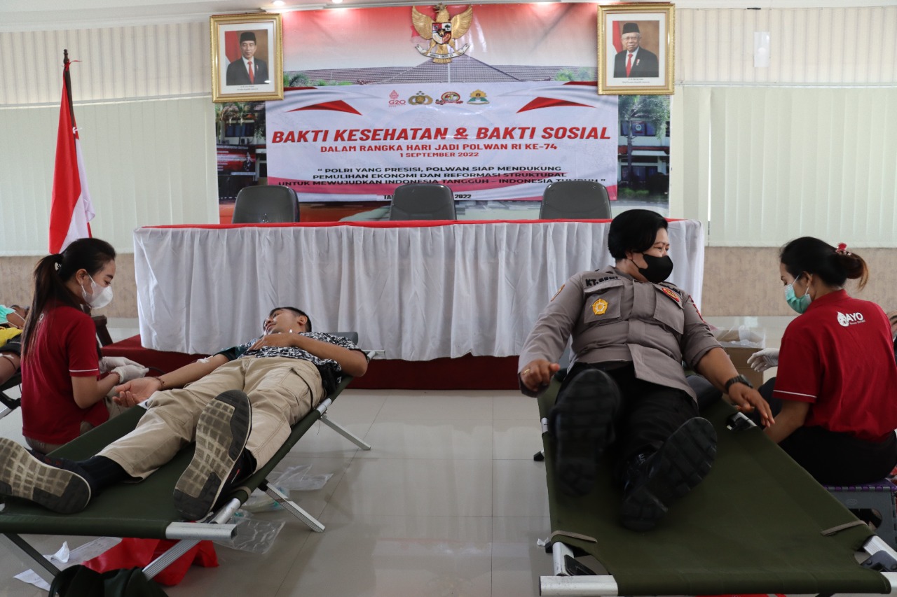Polwan Polres Tabanan bekerjasama dengan PMI Kabupaten Tabanan dan Sidokkes Polres Tabanan melaksanakan kegiatan Bhakti Kesehatan Donor Darah untuk membantu masyarakat yang membutuhkan didampingi Kapolres Tabanan AKBP Ranefli Dian Candra, S.I.K., M.H,. Kamis (04/8/2022).