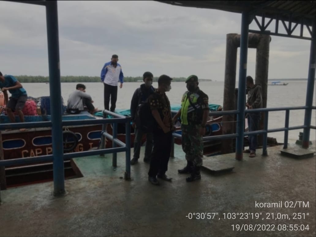 SIBERONE.COM - Anggota koramil 02/Tanah Merah, jajaran Kodim 0314/Inhil Sertu P Siregar melaksanakan himbauan kepada para penumpang yang berdatangan maupun berpergian dari pelabuhan kelurahan Kuala Enok, kecamatan Tanah Merah, Kabupaten Indragiri Hilir, Jum'at (19/8/2022) pagi.