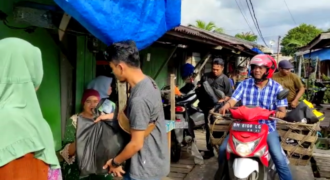 Dengan menggunakan sepeda motor yang dilengkapi dengan keranjang Ketua PD-IWO Inhil Muridi Susandi bersama pengurus menyusuri jalan untuk mengantarkan puluhan paket sembako ini ke rumah-rumah warga khususnya kaum dhuafa.