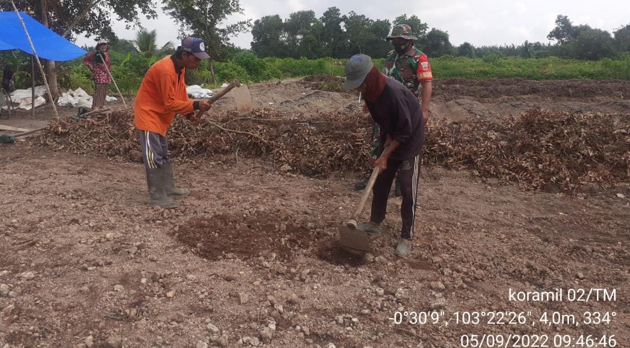 SIBERONE.COM - Mendukung program pemerintah dalam hal ketahanan pangan, Babinsa Koramil 02/Tanah Merah, jajaran Kodim 0314/Inhil Sertu P Siregar melaksanakan kegiatan persiapan untuk Ketahanan pangan di NTS Desa Tanah Merah, Kecamatan Tanah Merah, kabupaten Indragiri Hilir, Senin (5/9/2022) pagi.