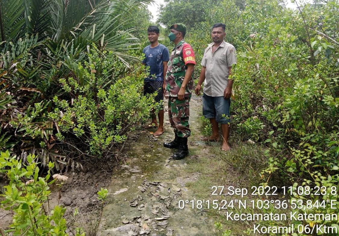 SIBERONE.COM - Mengantisipasi kebakaran lahan dan hutan (Karhutla), Babinsa Koramil 06/Kateman Peltu Luhut bersama masyarakat melaksanakan kegiatan patroli Karlahut di wilayah dusun 1 Kelurahan Amal Bakti, kecamatan Kateman, kabupaten Indragiri Hilir (Inhil), Selasa (27/9/2022) pagi.