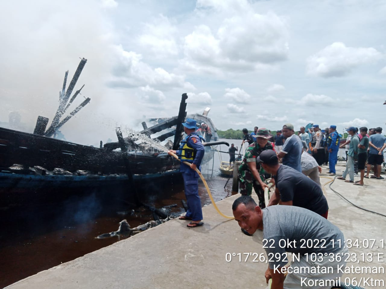 "Iya tadi ada kapal terbakar namun sudah dapat di padamkan dari Polsek Kateman dan di bantukan anggota Koramil 06/KTM Airud dan TNI-AL serta masyarakat setempat," kata Danramil.