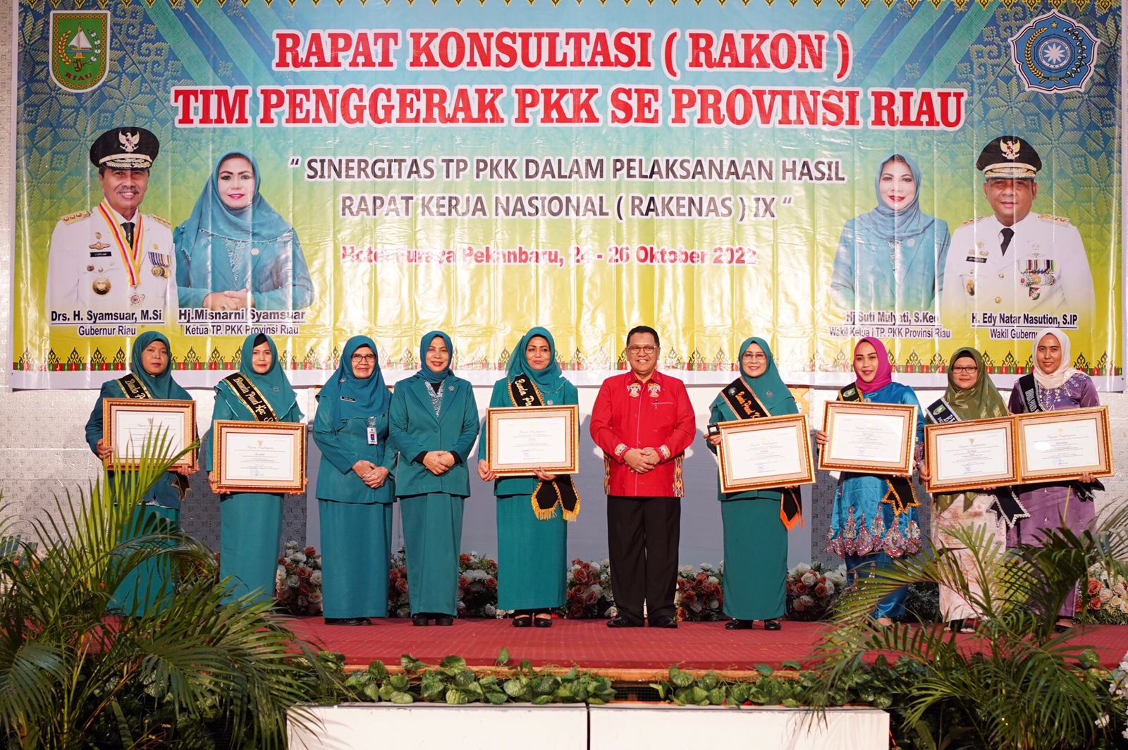 Apresiasi Bunda Paud Tingkat Nasional dan Pin Perak serta Piagam Penghargaan itu diserahkan oleh Gubernur Riau (Gubri) H. Syamsuar yang diwakili Asisisten III Bidang Administrasi Umum Sekretariat Daerah Provinsi (Setdaprov) Riau Joni Irwan kepada Bunda Paud Kabupaten Inhil Hj. Zulaikhah Wardan saat menghadiri pembukaan Rapat Konsultasi (Rakon) TP PKK Se-Provinsi Riau di Hotel Furaya Jl. Jenderal Sudirman Pekanbaru, Senin (24/10/2022) malam.