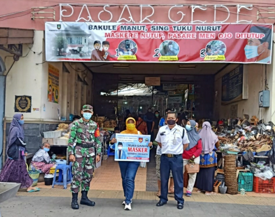 Babinsa Bangun Kesadaran Para Pedagang dan Pengunjung Pasar Gede Patuhi Protkes