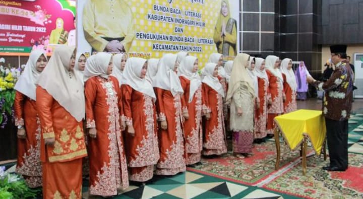 SIBERONE.COM - Bunda Baca/Literasi Kabupaten Indragiri Hilir dan Pengukuhan bunda Baca/Literasi Kecamatan tahun 2022 secara serentak di kukuhkan pada, Kamis (22/12/2022) bertempat di Gedung Engku Kelana, Tembilahan.