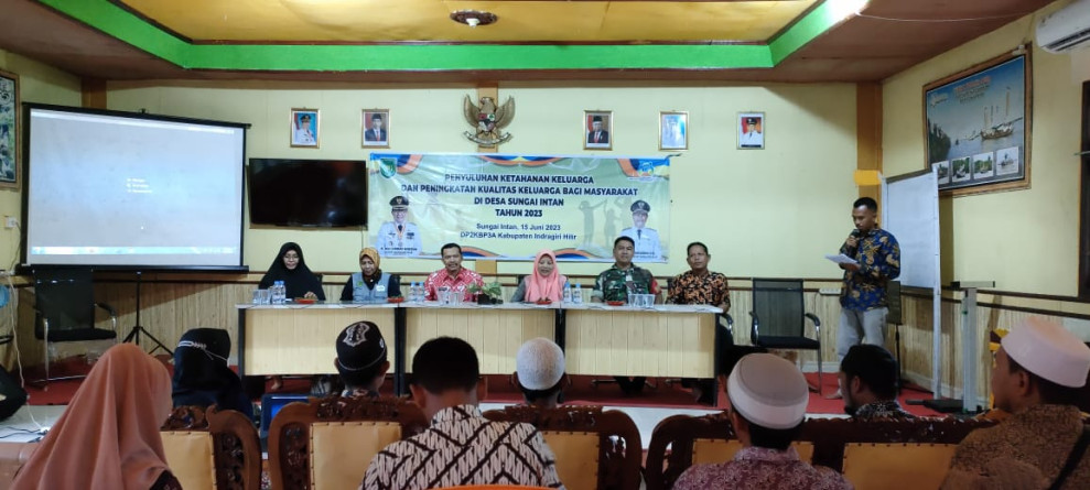 SIBERONE.COM - Dinas Pengendalian Penduduk, Keluarga Berencana, Pemberdayaan Perempuan dan Perlindungan Anak (DP2KBP3A) Kabupaten Indragiri Hilir Riau bersama Pemerintah Desa Sungai Intan Kecamatan Tembilahan Hulu menggelar penyuluhan Ketahanan Keluarga dan Peningkatan Kualitas Keluarga bagi masyarakat Desa Sungai Intan yang berlangsung di Balai Pertemuan Desa, Kamis, 15 Juni 2023.