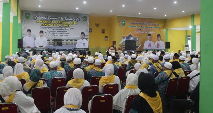 Kedatangan Jama'ah Haji TH 1444 H/2023 disambut langsung Bupati bersama Wakil Bupati dan dihadir juga Kepala Biro Kesra Setda Provinsi Riau Drs. Zulkifli Syukur, M.Ag, Ketua TP PKK Hj.Zulaikha Wardan, Kepala Kemenag Inhil H.Harun, Asisten 1 Setda Inhil Drs. Tantawi Jauhari, dan Kepala Kesbangpol Drs.HM.Arifin serta PPIH Daerah.